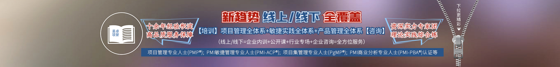 上海易卓公司,長期專注于項目化管理定制化培訓和嵌入式咨詢為核心服務方式,一站式全面滿足企業項目管理成熟度 的有效提升,且同步助力企業項目管理人才培養和勝任力提升,以及完善職場人士的項目化管理能力提升。因此,上海 易卓公司長期以來,均作為諸多知名企業組織和大量職場人士的培訓合作選擇。